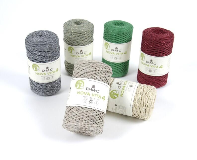 NOVA VITA 4 Metallic Effects ist ein Garn aus recycelter Baumwolle und recyceltem Polyamid für Heimdekorationen.
