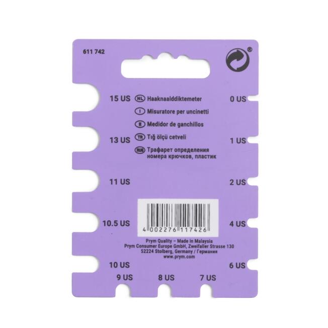 Ein Set besteht aus je einer Doppelnadel in 3,0mm-3,5mm, 4,0mm-4,5mm, 5,0mm-5,5mm, 6,0mm-6,5mm und 7,0-8,0mm, verpackt in einem weichen lila Stoffetui. Dieses Etui hat einen schönen gewellten Rand und ein Schäfchendekor, das den Charme des wunderbaren Häkelsets verstärkt.