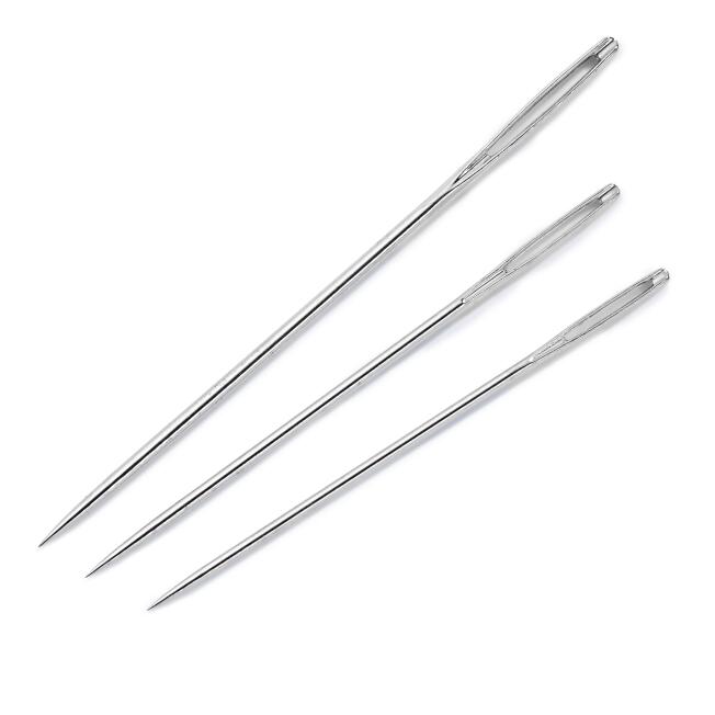 Sie sind aus rostgeschütztem Stahl gefertigt und verfügen über ein großes Öhr zur Verwendung von mittelgrober und grober Wolle. Die abgerundete Spitzenform schont die Fasern der Wolle. Damit sind diese Nadeln ideal zum vernähen und zusammennähen von STrickstücken und Strickstoffen (Jersey, Strickware) geeignet.